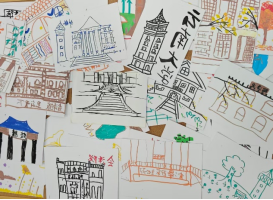 本次活动最动人、最富创意的环节,莫过于“我是小小建筑评论家”互动创作。在博物馆特设的互动区里,彩笔、便签和空白的互动展板静候着大小参与者。由于场地有限,大家默契的把参与活动的机会先让给积极的“小朋友”,而部分跃跃欲试的“大朋友”也忍不住申请加入。有人勾勒红砖拱窗的优雅线条,有人画出九五台阶上的参天古树,还有人描绘冬日金黄的银杏。每一幅用心的画作被仔细粘贴到互动展板上,汇成一幅集体创作的记忆拼图。