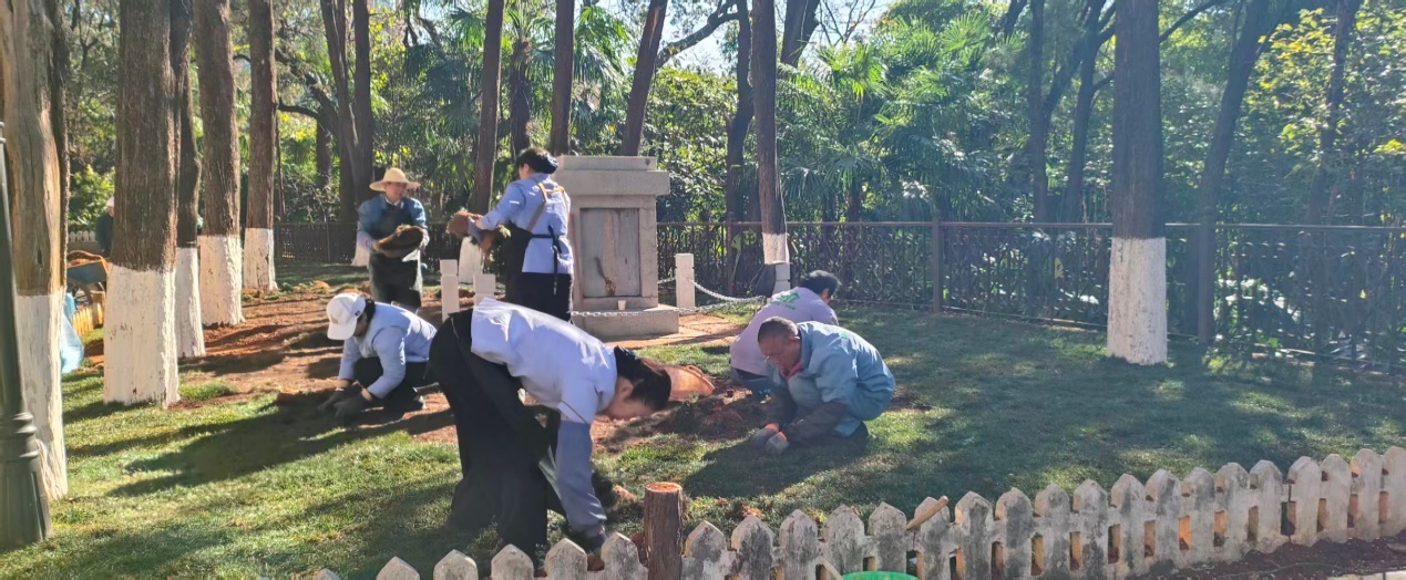 会泽院,云南大学东陆校区的精神地标,承载着百年学府的厚重底蕴。寒假期间,当校园褪去平日的喧嚣,正是实施景观维护改造的黄金时段。为配合做好"致青春,我们在东二院的那些日子"校友返校接待活动,并保障新学期会泽院区域以崭新面貌迎接师生,东陆校区管理中心牵头组织,将两侧草坪改造工程列为假期重点攻坚任务,仅用三日高效施工,让百年会泽在春日里焕发新绿。