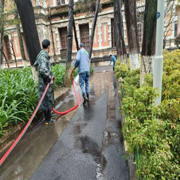为保持校园核心区域日常环境品质,延续东陆校区历史底蕴与文明风貌,中高后勤服务(云南)有限公司云大东陆服务中心于 2025 年 10 月 17 -21 日启动“护航洁校园”专项清洁行动,对重点区域进行集中维护。通过系统清理与细致修整,使校园环境持续保持整洁有序,为师生教学生活和公众参观提供一贯舒适的基础条件。